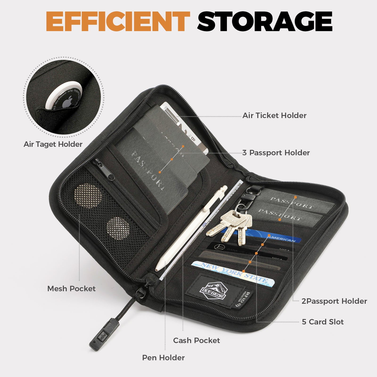 - 【Air Tag Holder Design & SIM Card Holder and Eject Pin】Passport wallet built-in AirTag holder to track your wallet, Airtag not included; Not support Android devices, comes with SIM card tray eject tool, convenient for all models.